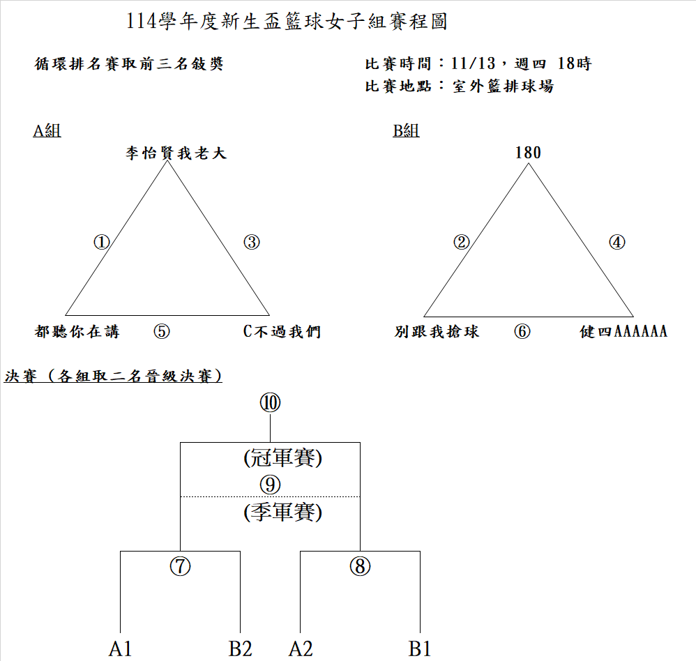 114學年度新生盃籃球賽賽程表 10.7 | |||||||||