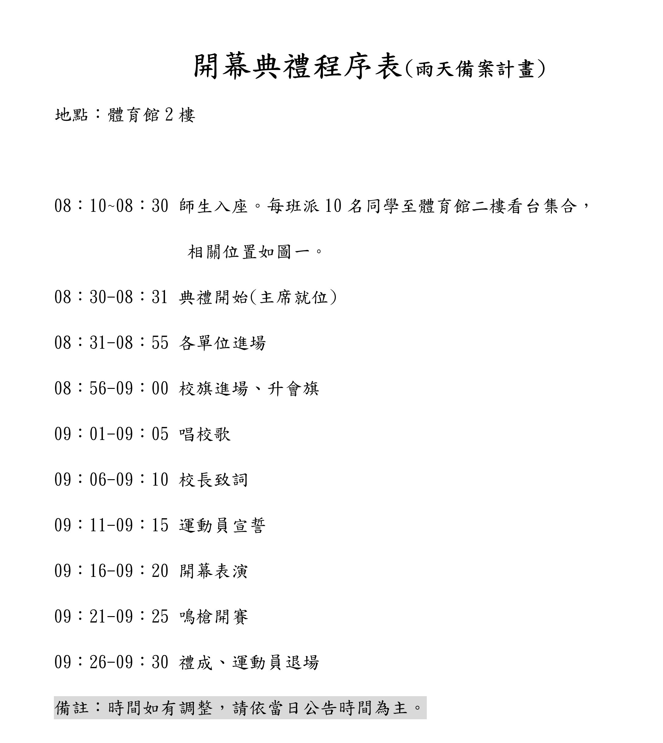 114學年度78週年校慶運動會開幕時間表和位置圖